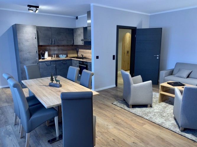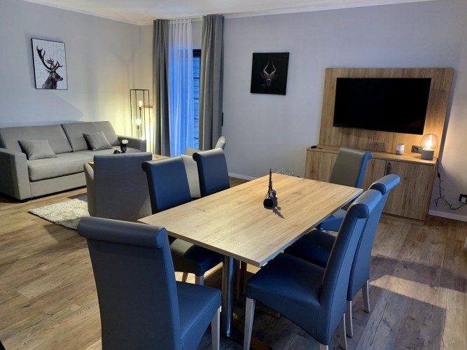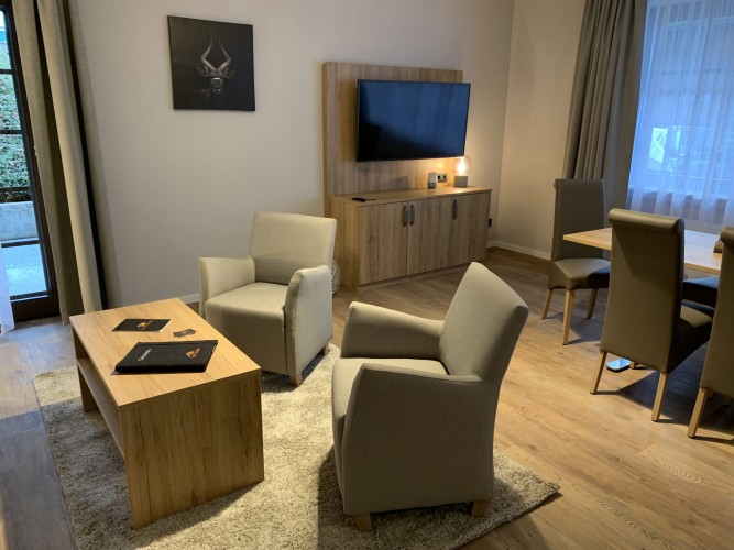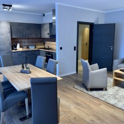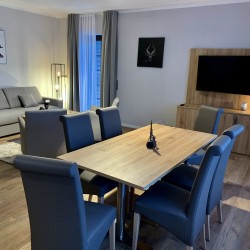 ONS JUWEELTJE. Ontspan en laat je gedachten afdwalen. Met twee slaapkamers (een met een tweepersoonsbed, een met twee eenpersoonsbedden) is er ruimte voor het hele gezin. De slaapbank in de woonkamer biedt tevens ruimte aan twee personen, zodat er maximaal zes personen in het appartement kunnen verblijven. De ruime eethoek met open keuken is ideaal voor lange maaltijden. Het absolute hoogtepunt is de 38 graden hot tub op het terras, die vooral op koude dagen voor een goede sfeer zorgt.