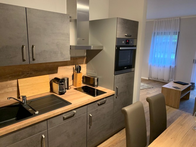 - Hoogwaardige keuken met koelkast, vaatwasser, keramische kookplaat en oven